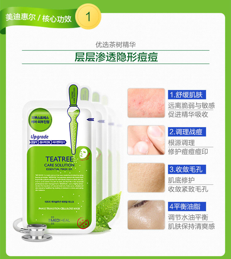 美迪惠尔Mediheal 茶树面膜10片装 韩国产