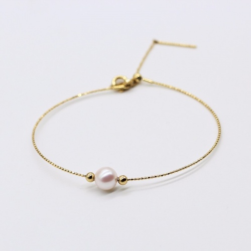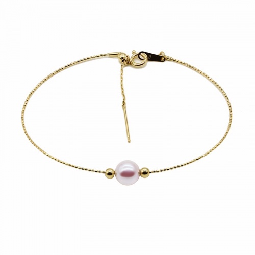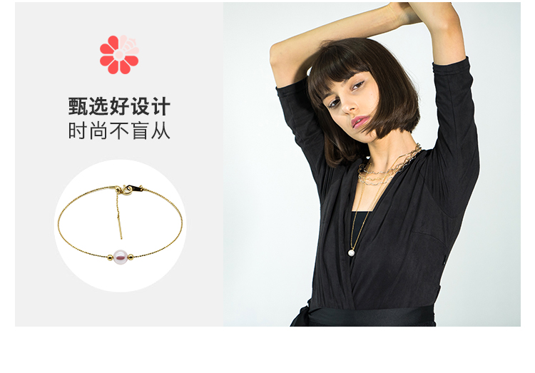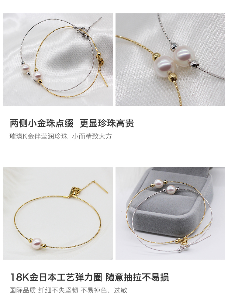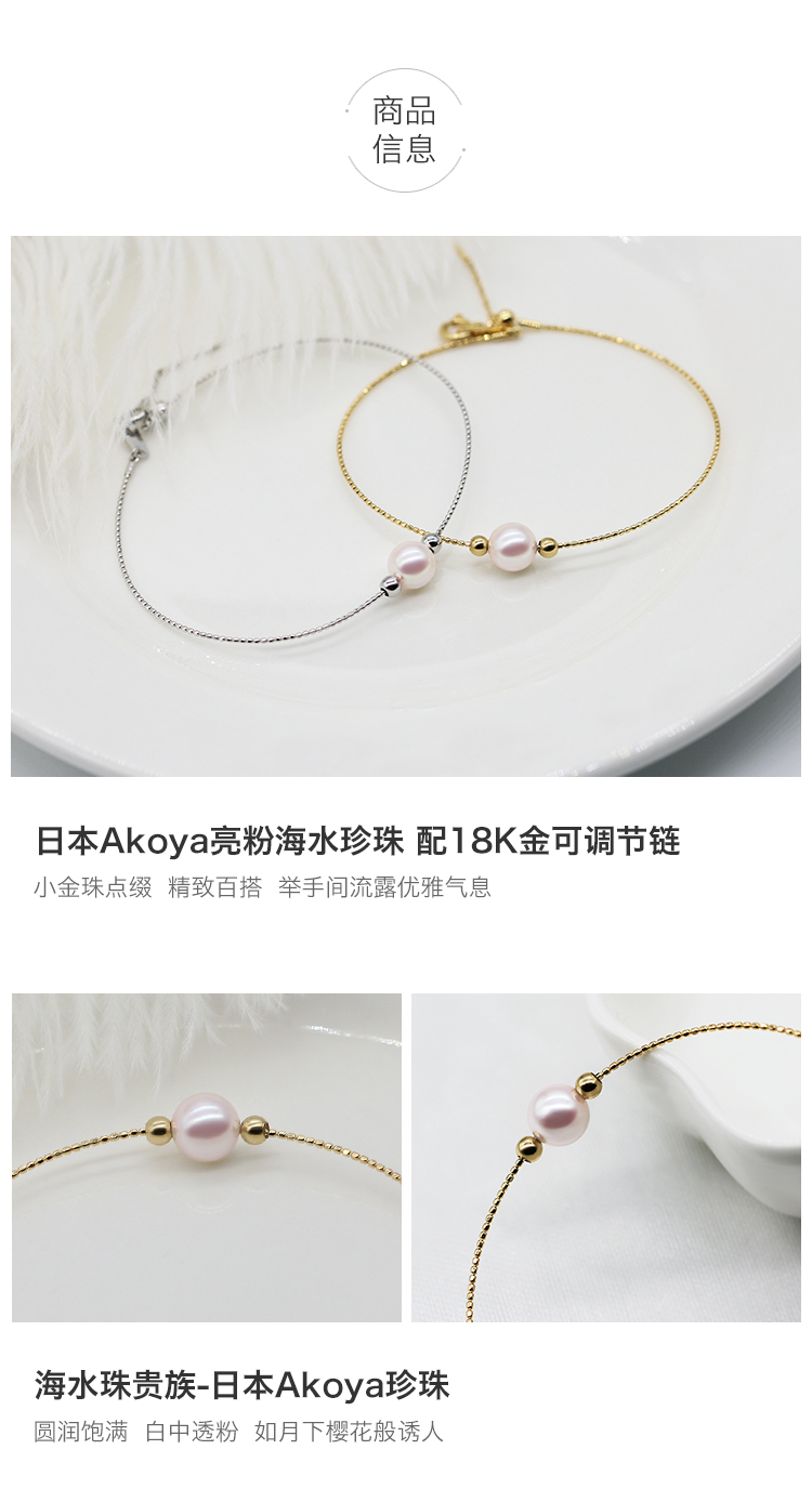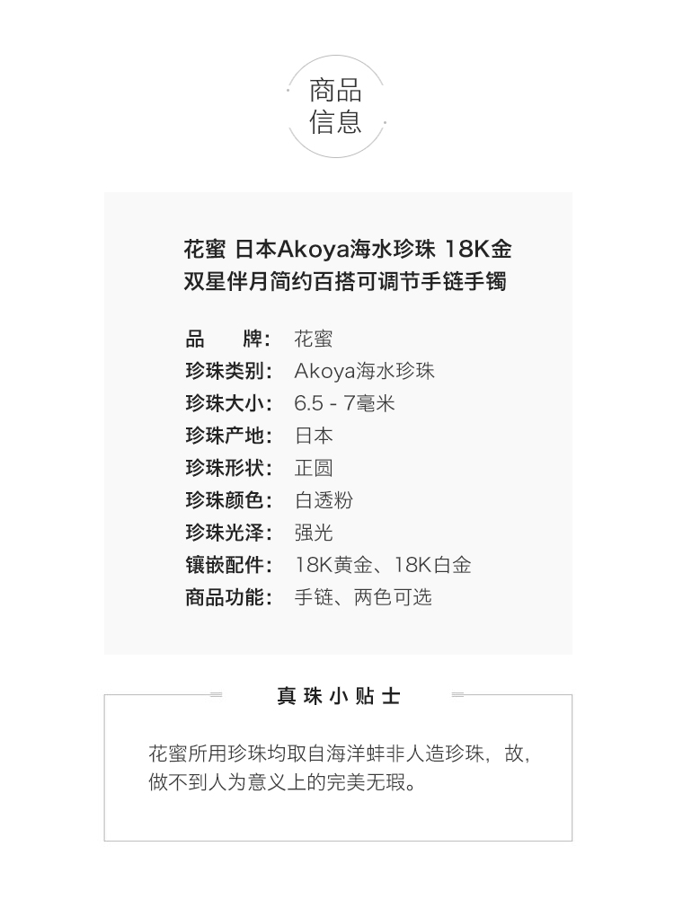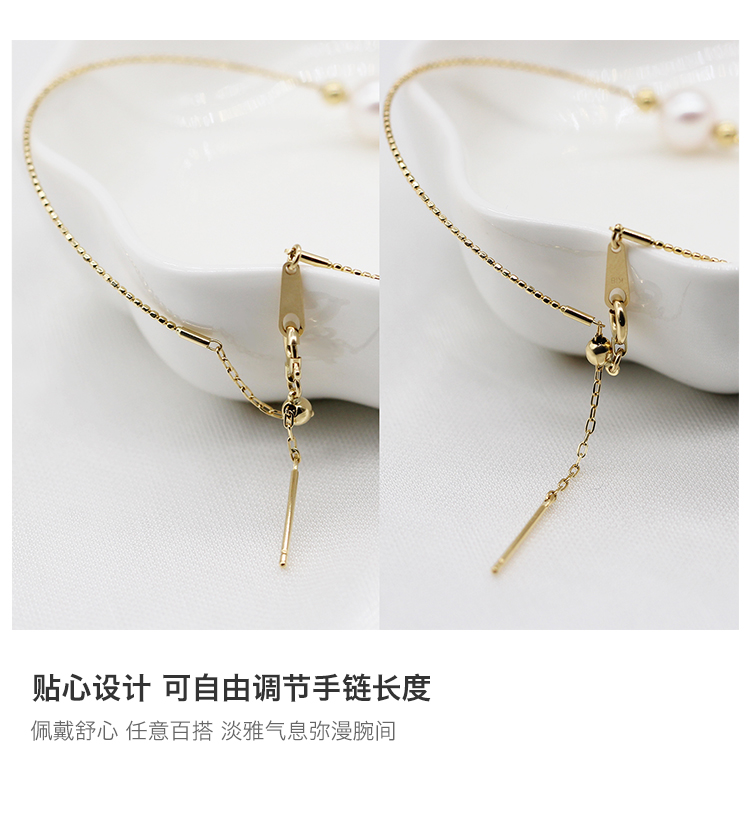 花蜜日本Akoya海水珍珠18k金双星伴月简约百搭可调节手链手镯