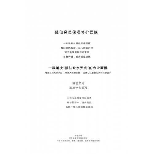 深度补水、滋润保湿、缩水修复,可促进皮肤表面的水合作用,补充日常流失水分,令肌肤滋润,持久保湿锁水,令肌肤充实,饱满,恢复肌肤持久弹性。