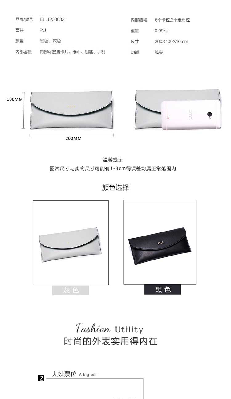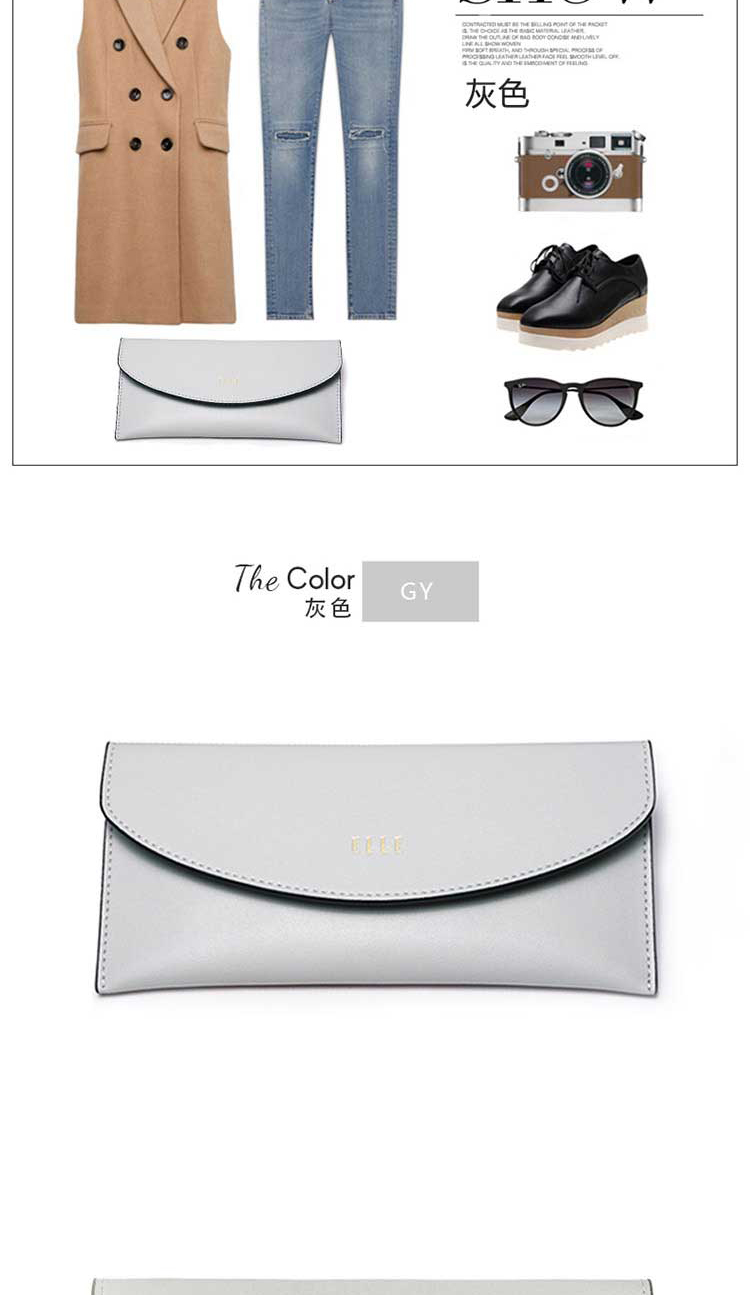 ELLE(她)票夹长款钱包休闲百搭E36F1333032 灰色