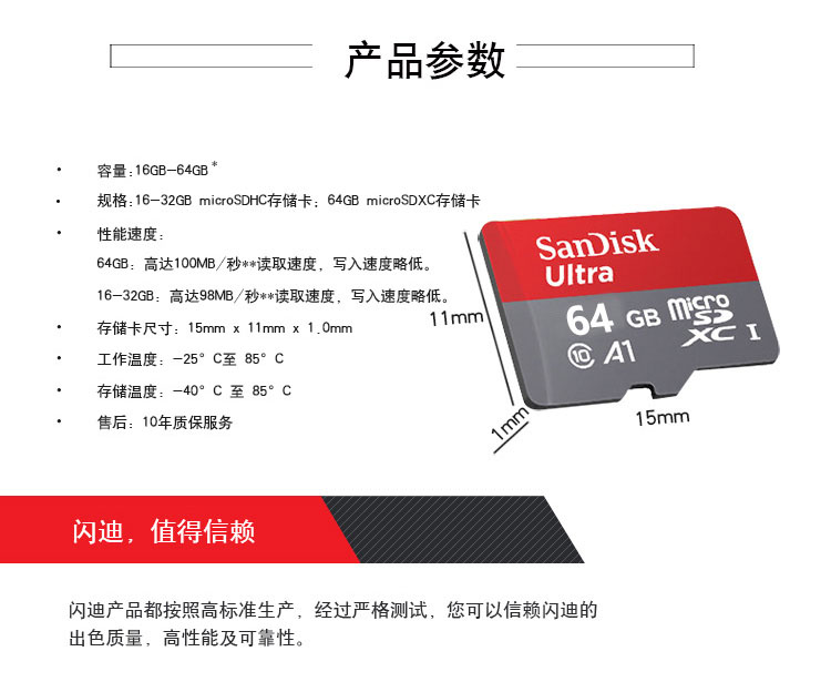 闪迪(SanDisk)A1 64GB至尊高速移动MicroSDXC存储卡